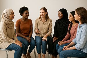 - Im Frauensprachtreff lernen Frauen zusammen Deutsch.
