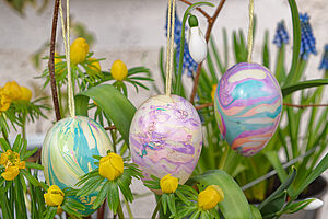 Unter fachkundiger Anleitung lernen Sie innovative & schnelle Färbetechniken für dekorative Oster-Eier.